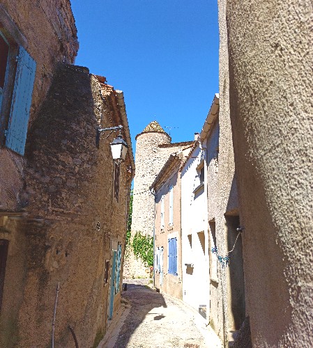It is tucked away in a lovely little street that runs between what used to be the ramparts of the village and the chateau walls. In fact les Volets Verts is in the back walls of the old chateau. Parts of it are very old,(this is not a new build), so don't be surprised if the floors are not level or if bits stick out? It has been renovated while still respecting many old features.